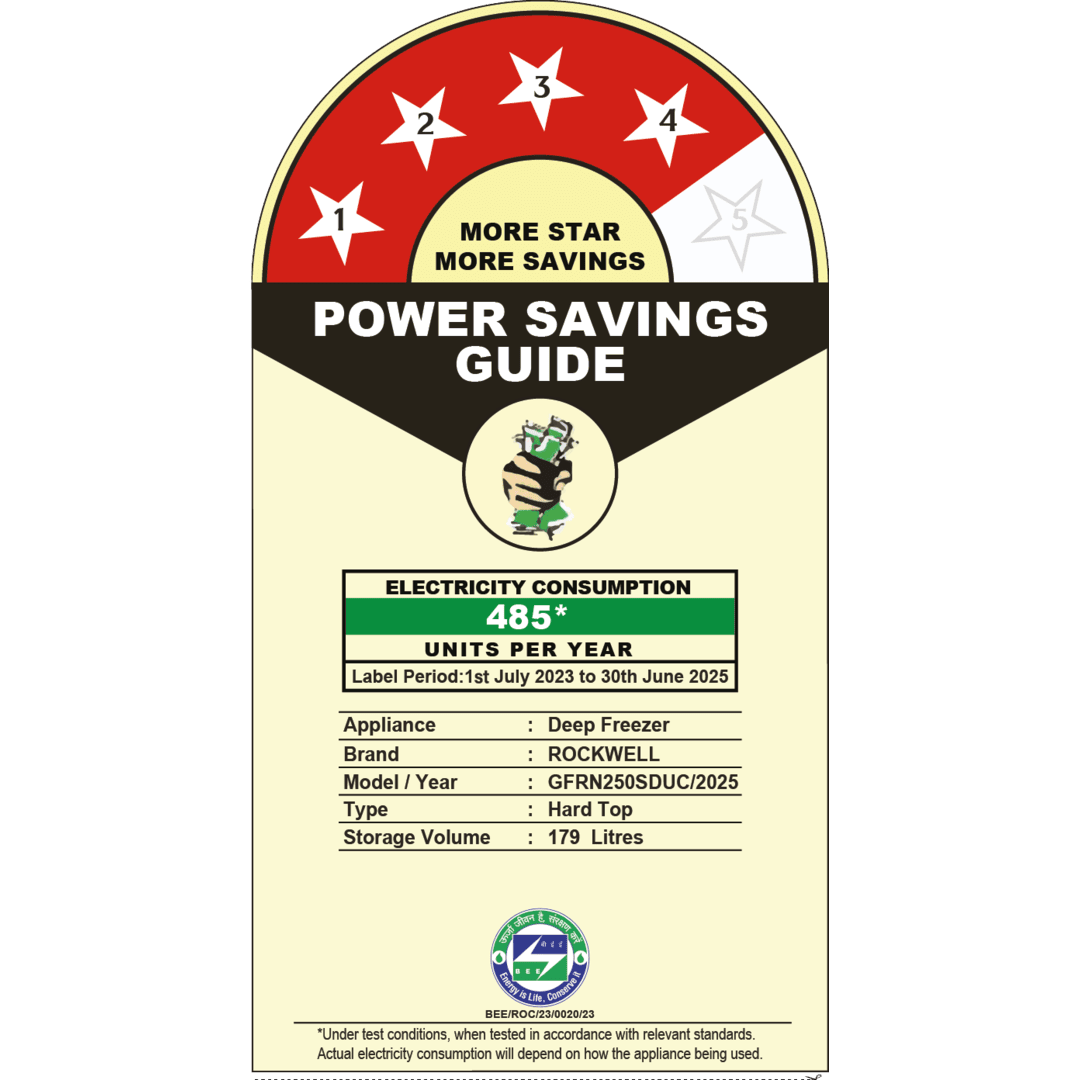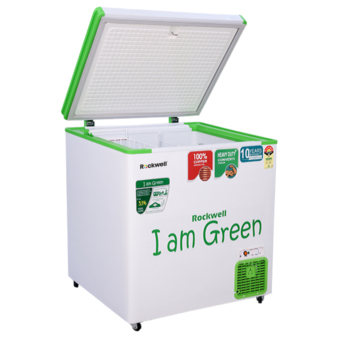 Rockwell 250SDUC, 4 star, Convertible GREEN Deep Freezer, Single Door, with 10 yrs. Warranty on Cooling Coil and Upto 53% Power Saving