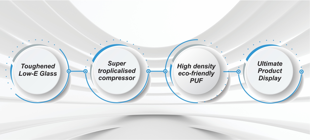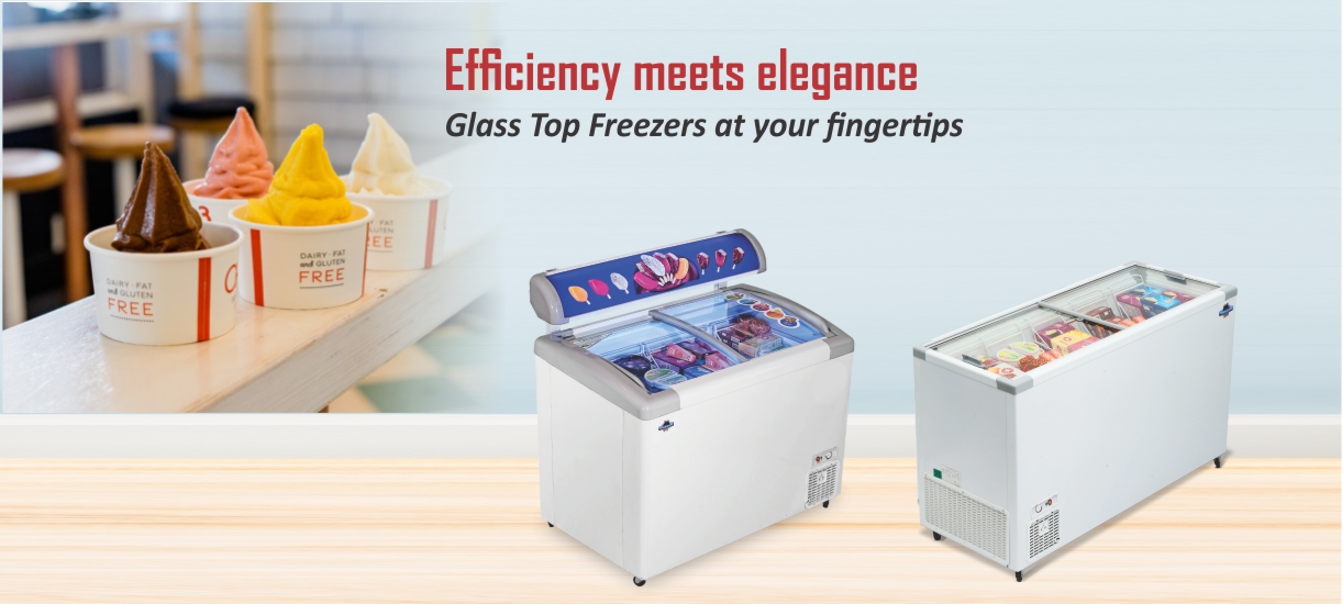 Our inclined glass top freezer- the perfect blend of modern design and efficient freezing capabilities for your home / business. Designed with 3 side air circulation to ensure better air flow & higher net capacity the inclined glass top freezers are the most effective and economical refrigeration solution.