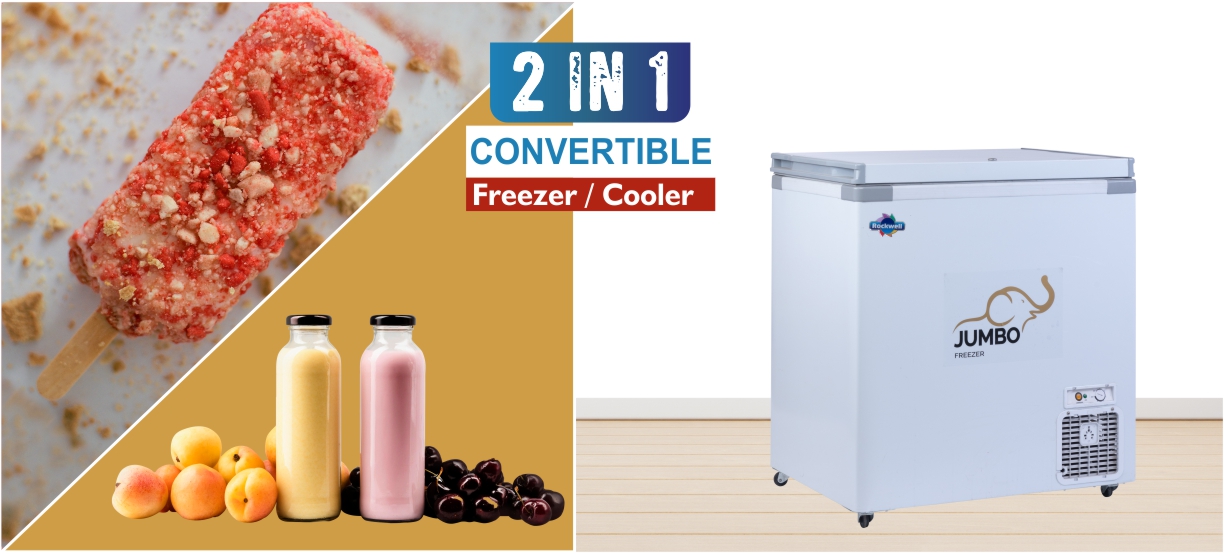 Rockwell 450DDU Hard Top Deep Freezer, Convertible Freezer and Cooler, Double Door with 4 Years Comprehensive Warranty, Low Power Consumption, Chest Freeze