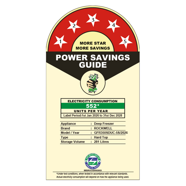 Rockwell 350SDUC, 5 Star, Convertible GREEN Deep Freezer, Single Door, with 10 yrs. Warranty on Cooling Coil and Upto 53% Power Saving