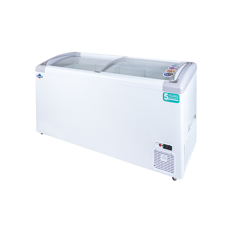 Ample storage: With a huge storage capacity, our inclined glass top freezer offers ample space for frozen foods, ice creams, and more. Adjustable baskets make organization a breeze.