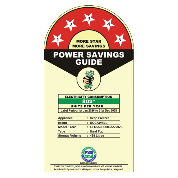 Energy Star Rating: Our Green freezer proudly carries the 5 Star rating, a symbol of its superior energy-saving capabilities and commitment to sustainability.