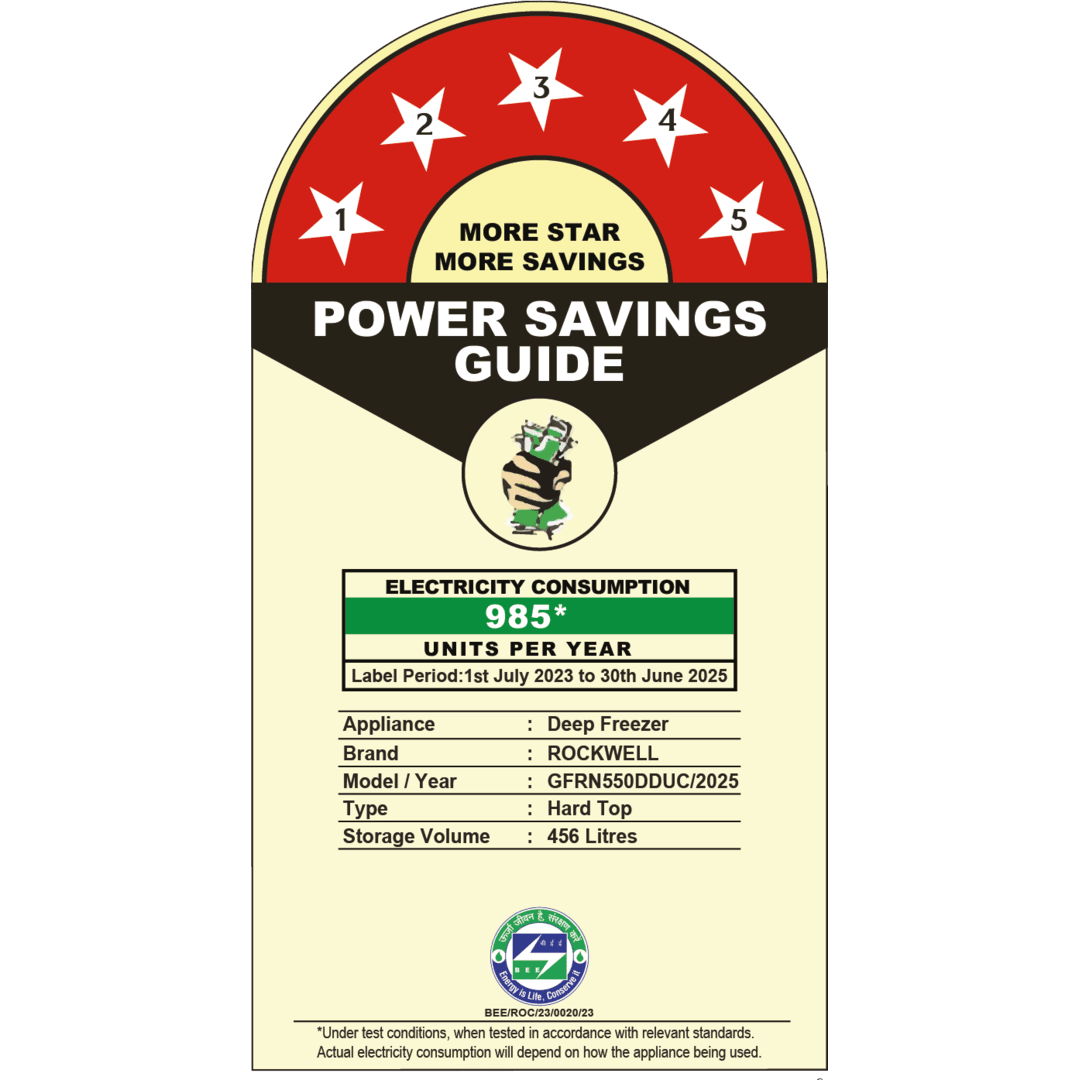 ROCKWELL 550DDUC, 5 Star, Convertible GREEN Deep Freezer, Double Door, with 10 yrs. Warranty on Cooling Coil and Upto 53% Power Saving
