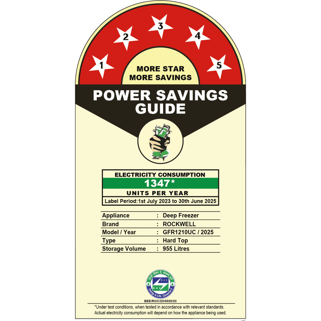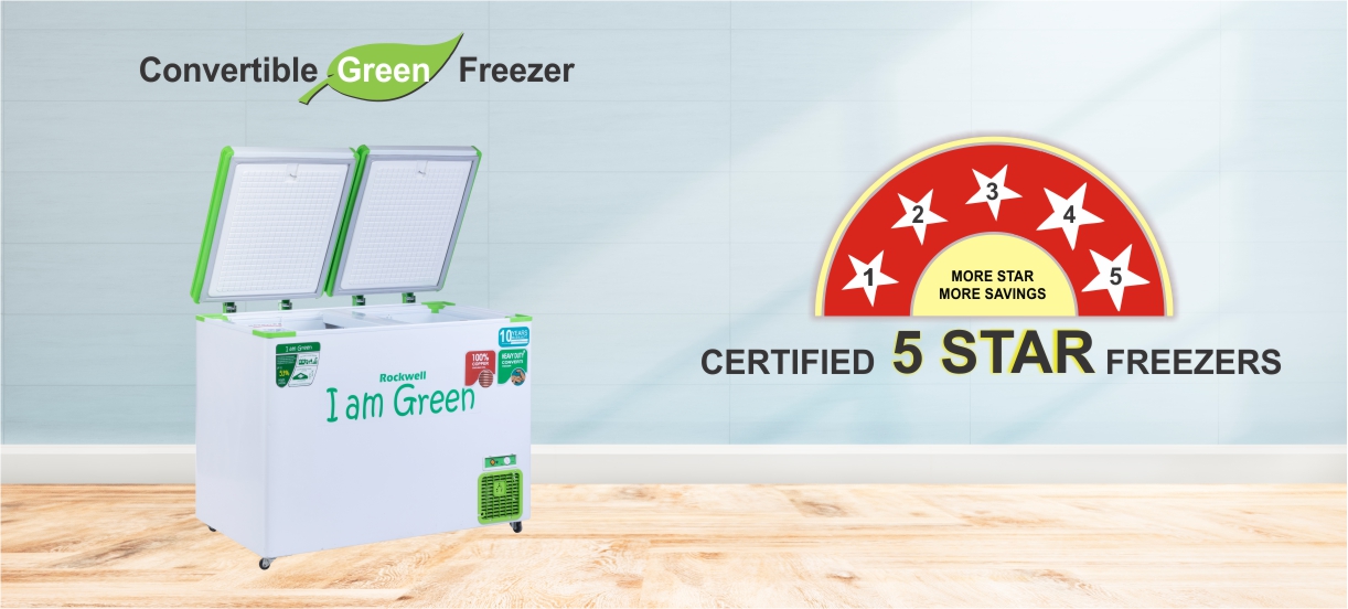 Energy Star Rating: Our Green freezer proudly carries the 5 Star rating, a symbol of its superior energy-saving capabilities and commitment to sustainability.
