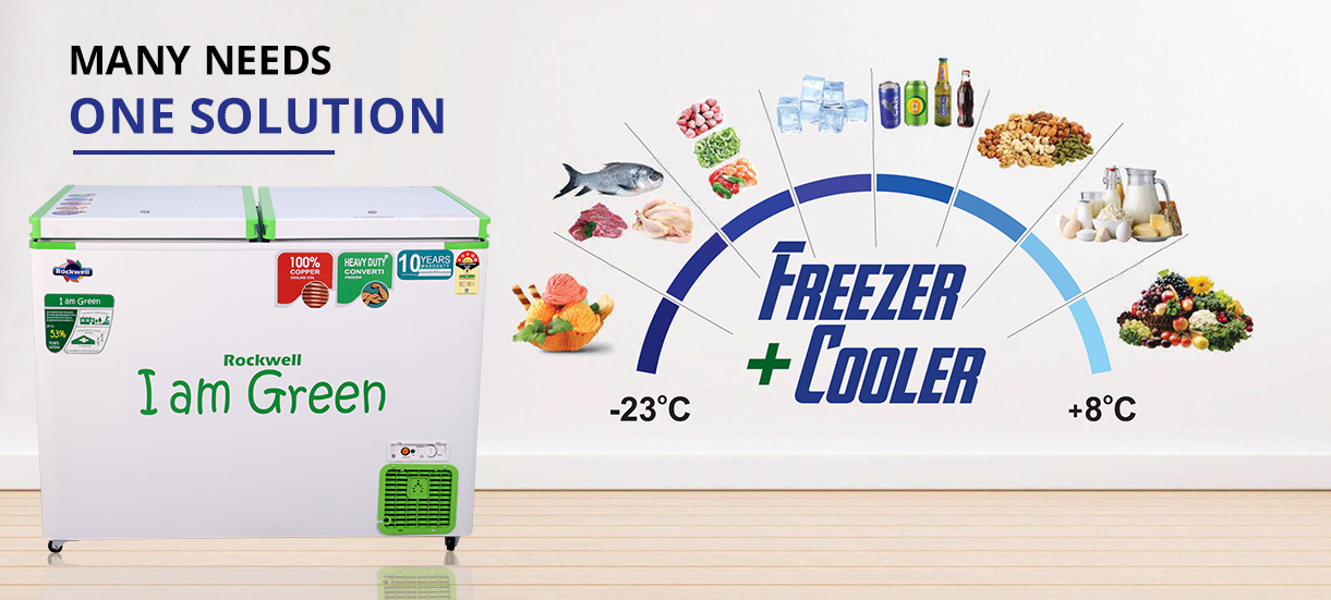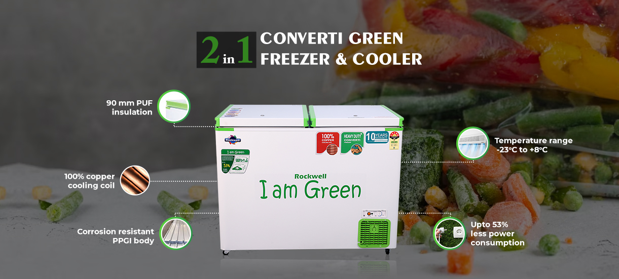 Rockwell 998 Ltr, 5 Star, Convertible GREEN Deep Freezer, Triple Door, with 10 yrs. Warranty on Cooling Coil and Upto 53% Power Saving – GFR1210F