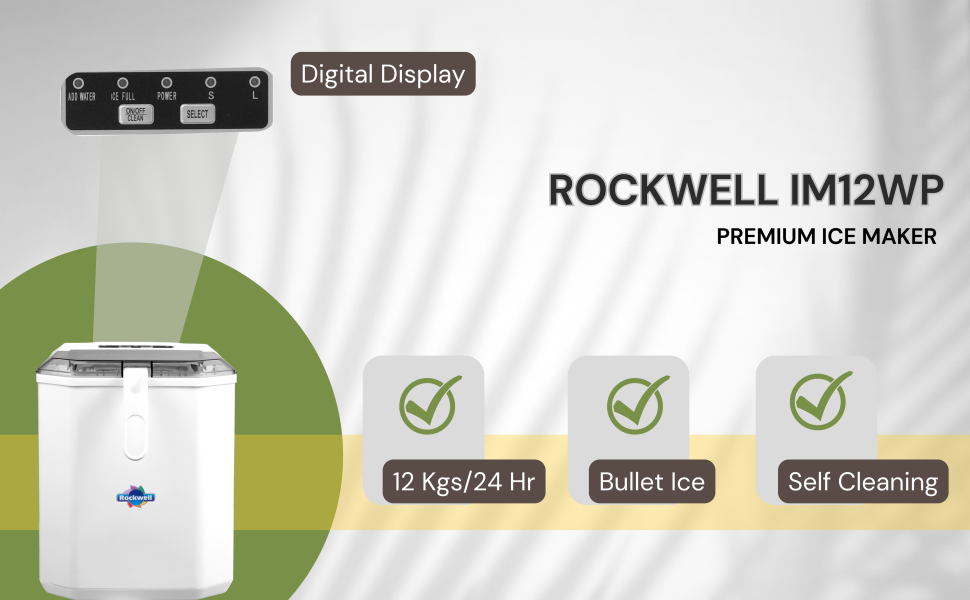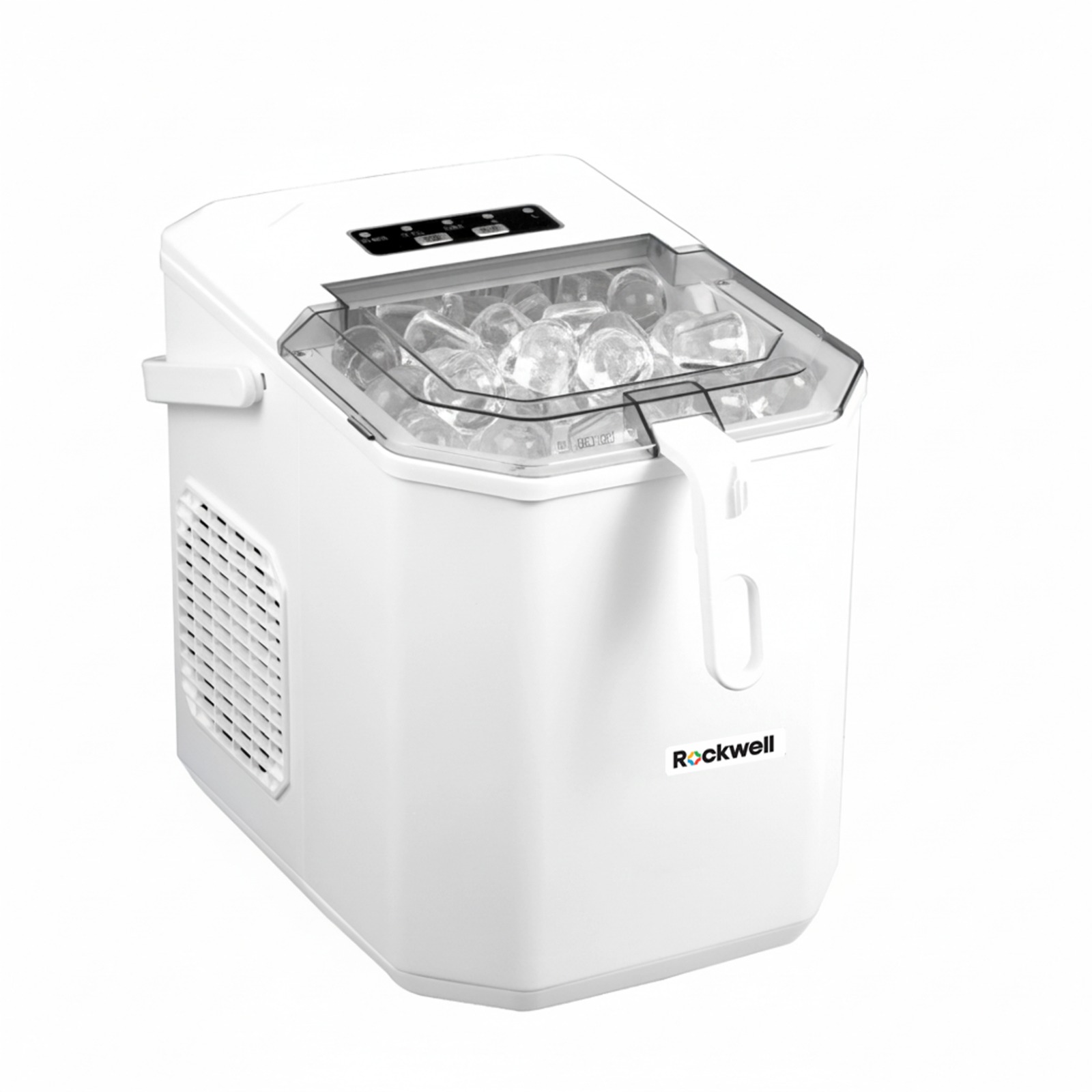 Rockwell IM12WP Portable Ice Maker Machine | 12 kg Daily Ice Production | Efficient Ice Maker with 0.6 kg Storage & 1.3L Water Tank | Bullet Ice Cubes in 6-12 Minutes – White